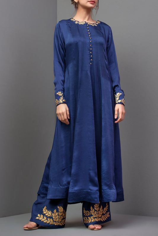 Duppatta Material: Chiffon Detail: indigo duppatta with gold lace all a