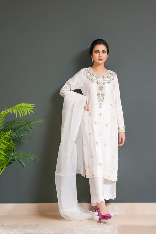 Duppatta Material: Organza Detail: Scallops with pearls all over the border