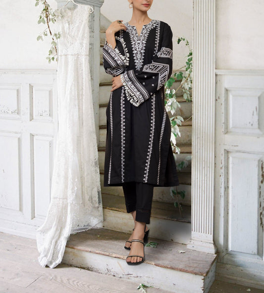 Duppatta Material: Chiffon Detail: Dark colored duppatta with lace all around
