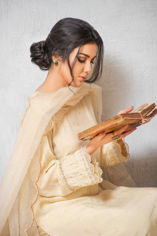 Top Material: Silk Detail: Ada work pearls, sequence, dabka on sleeves and daaman. Pearls spray...
