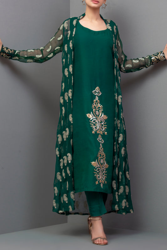 Product Pack: 3 Piece - Shirt, Inner & Lower Fabric: Chiffon & Silk Type: Stitched Embellishment: Resham...