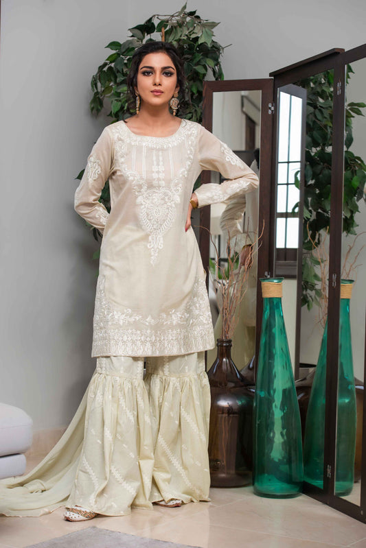 Material: Chiffon Detail: Thread embriodery on neck, sleeves and daaman Cut: Straight shirt Delivery Time:...
