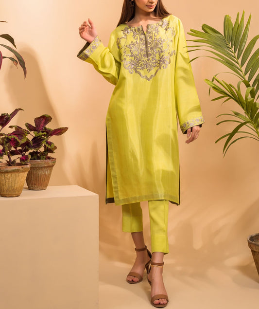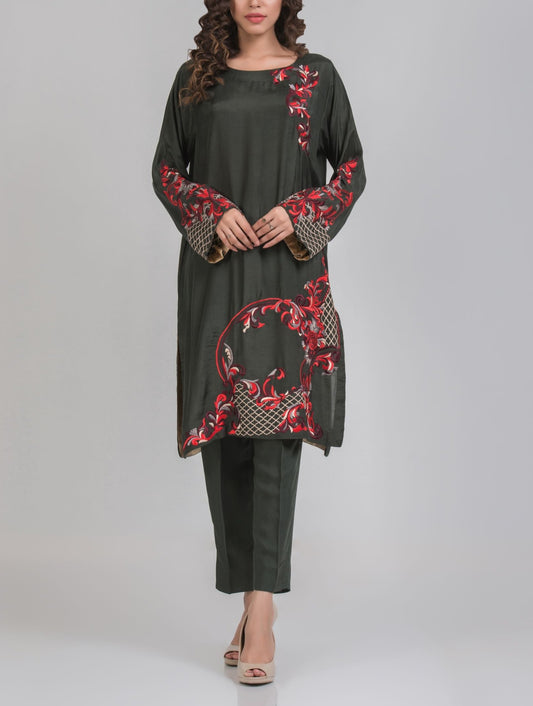 Top Material: Silk Detail: Multi colored thread embriodery on neck Cut: Straight shirt Delivery Time:...