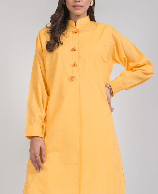 Shirt Material: Slub lawnColor - Cheddar YellowDesign Details: This solid cheddar yellow shirt is minimal...