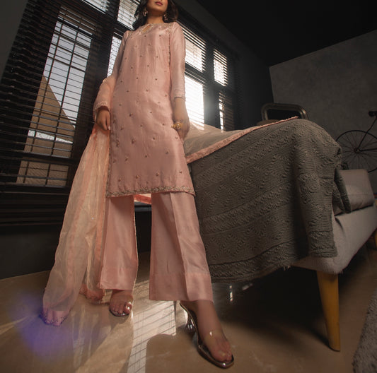 Top Material: Silk Detail: Adda work neck with pearls, dabka, stones, sitara. Pearls & stone...