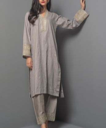 Shirt Material - Cotton Lower Material - Cambric Design - Plain grey base with embroidery Stitch Style...