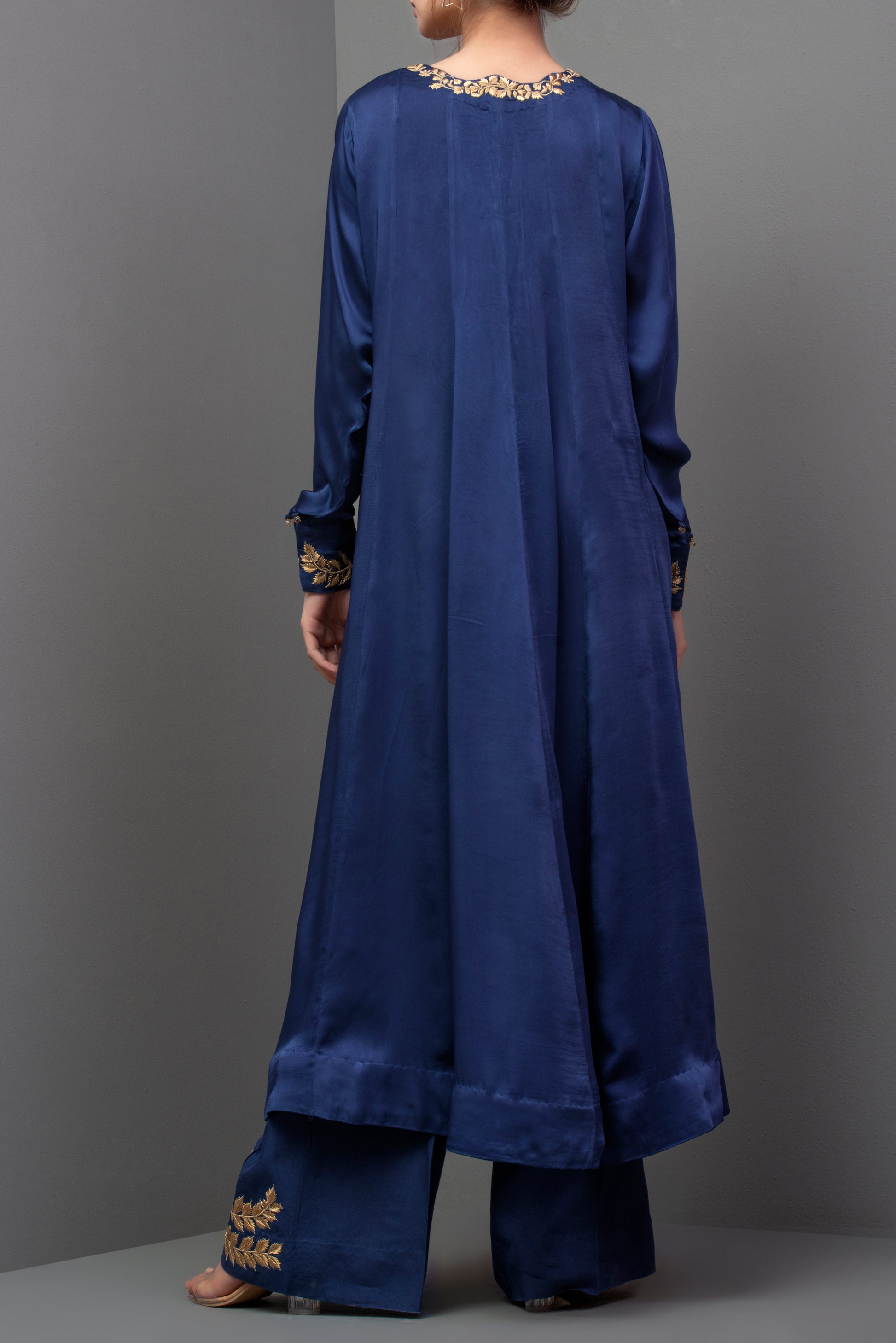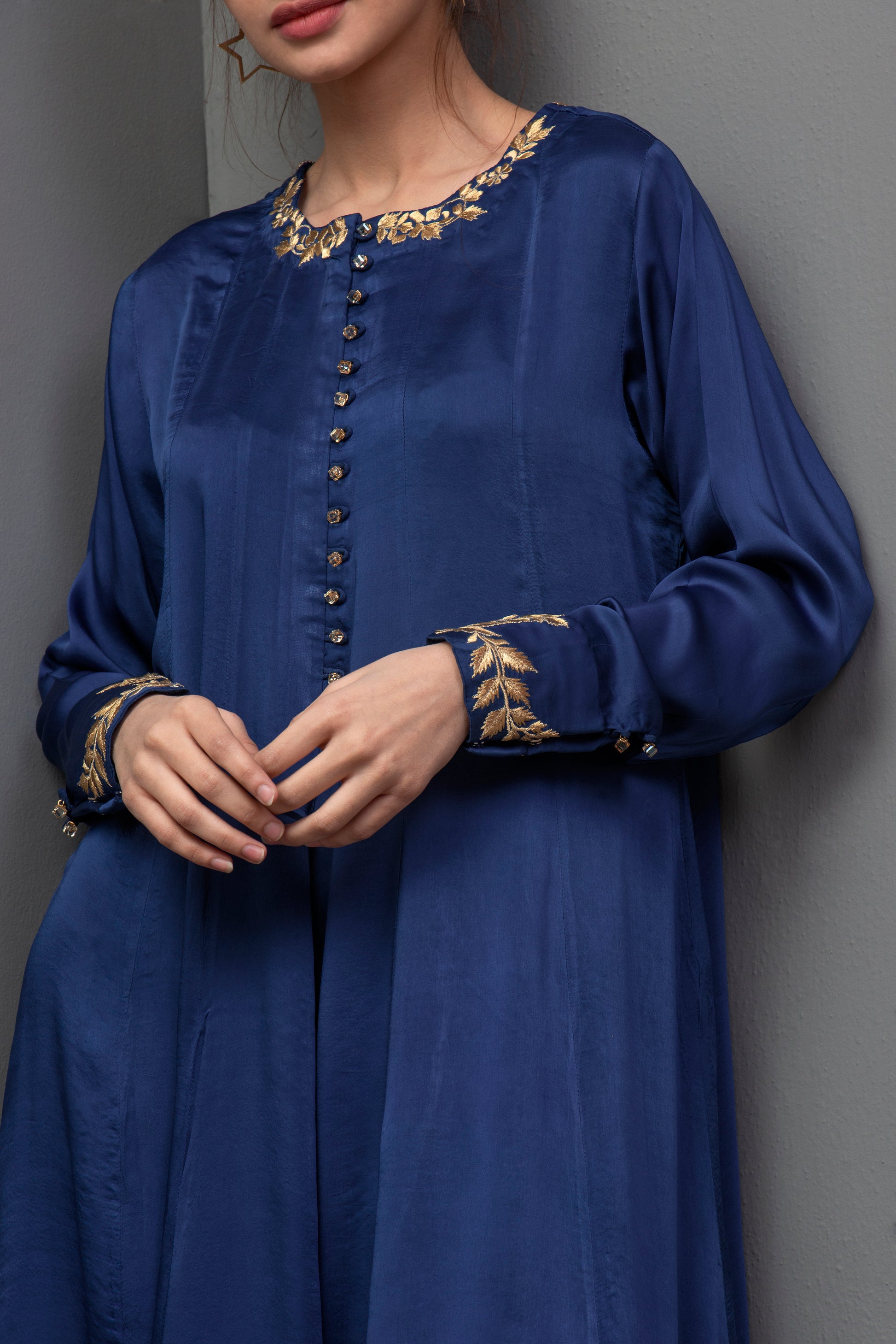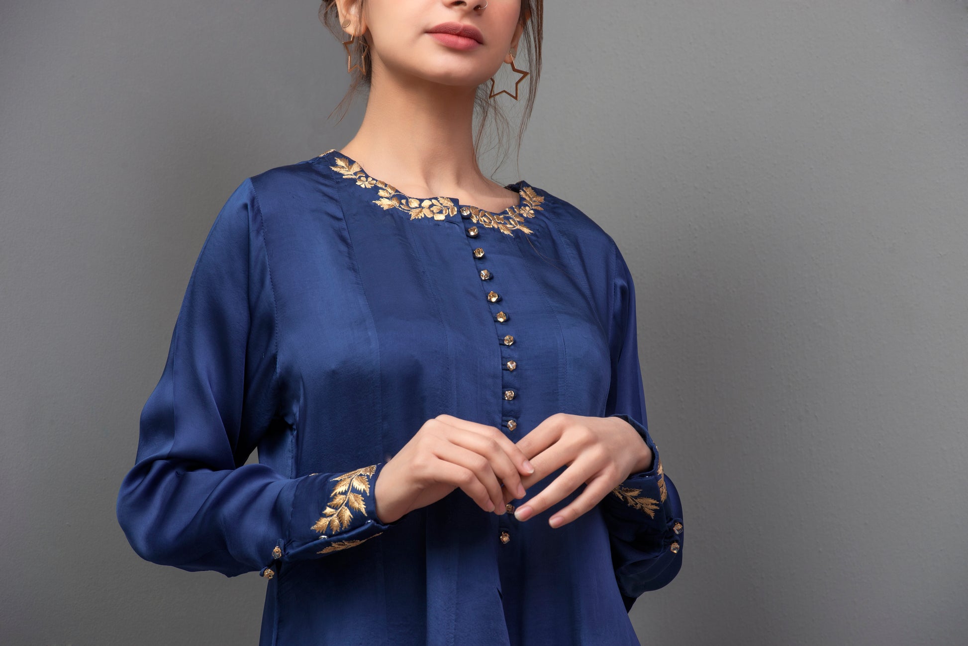Detail: Goldaari work on sleeve cuffs and neck line. Embelished with fancy buttons on the front (button design may differ from the picture but will give the same look regardless of design)