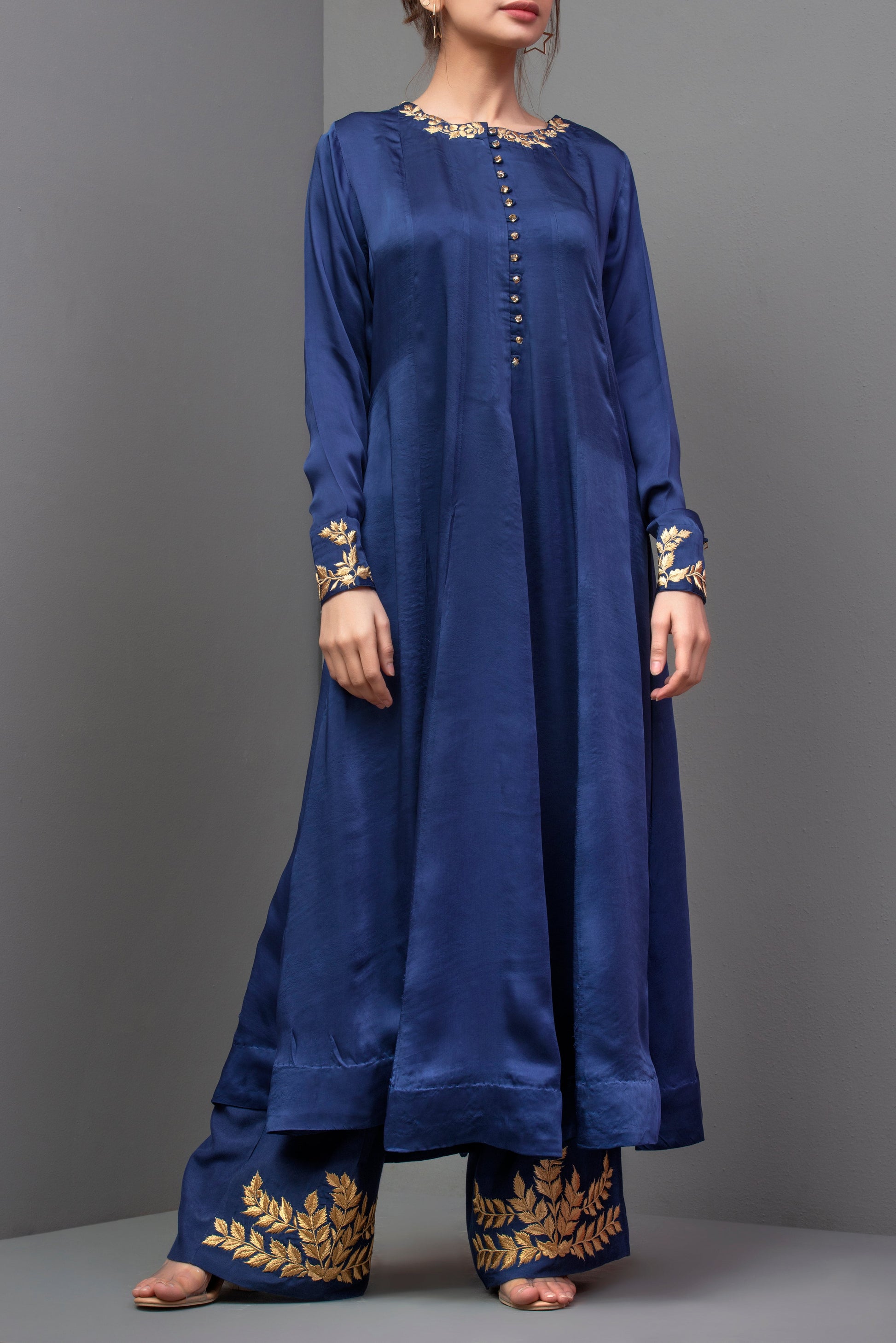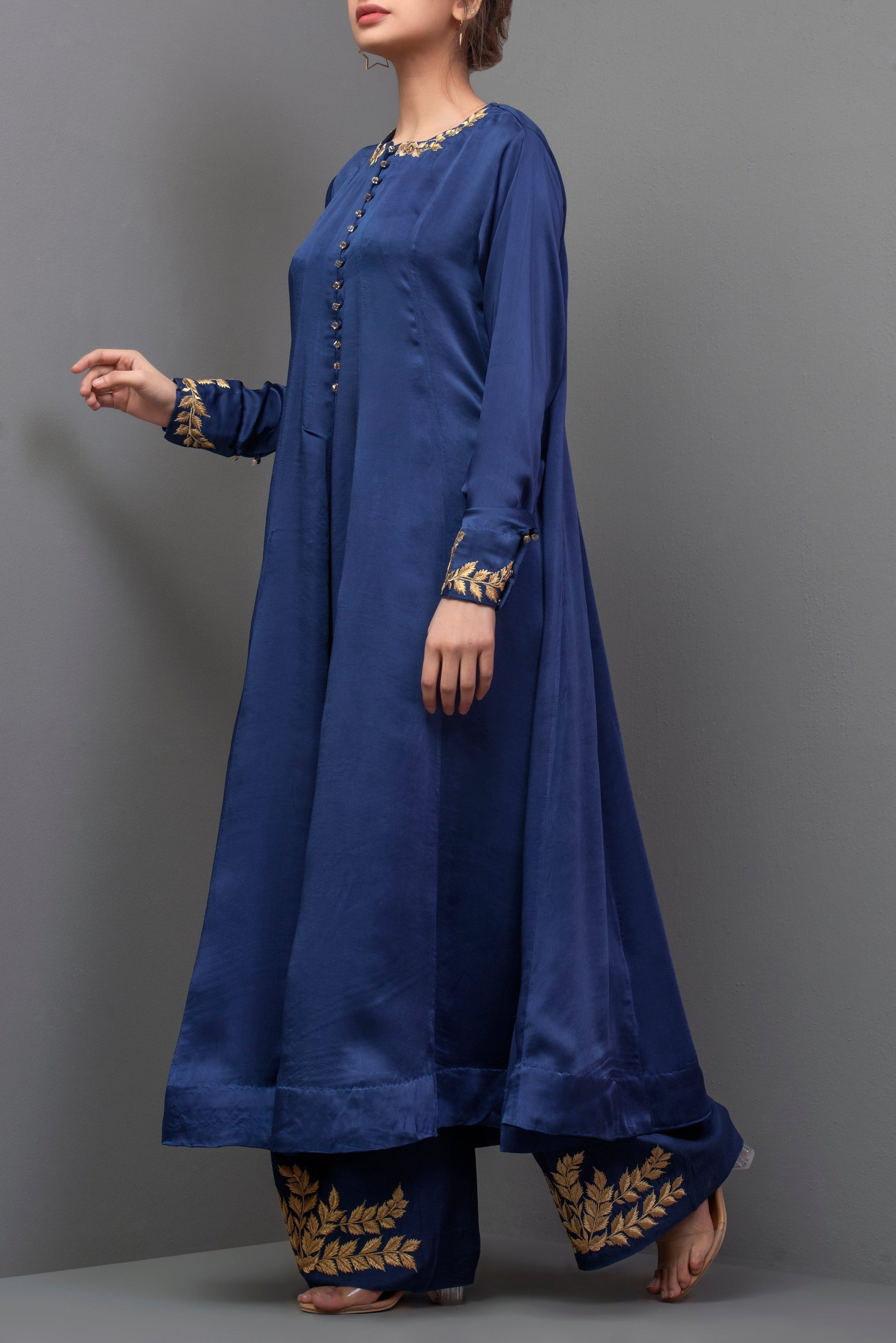 Detail: Dark blue duppatta with gold lace all around